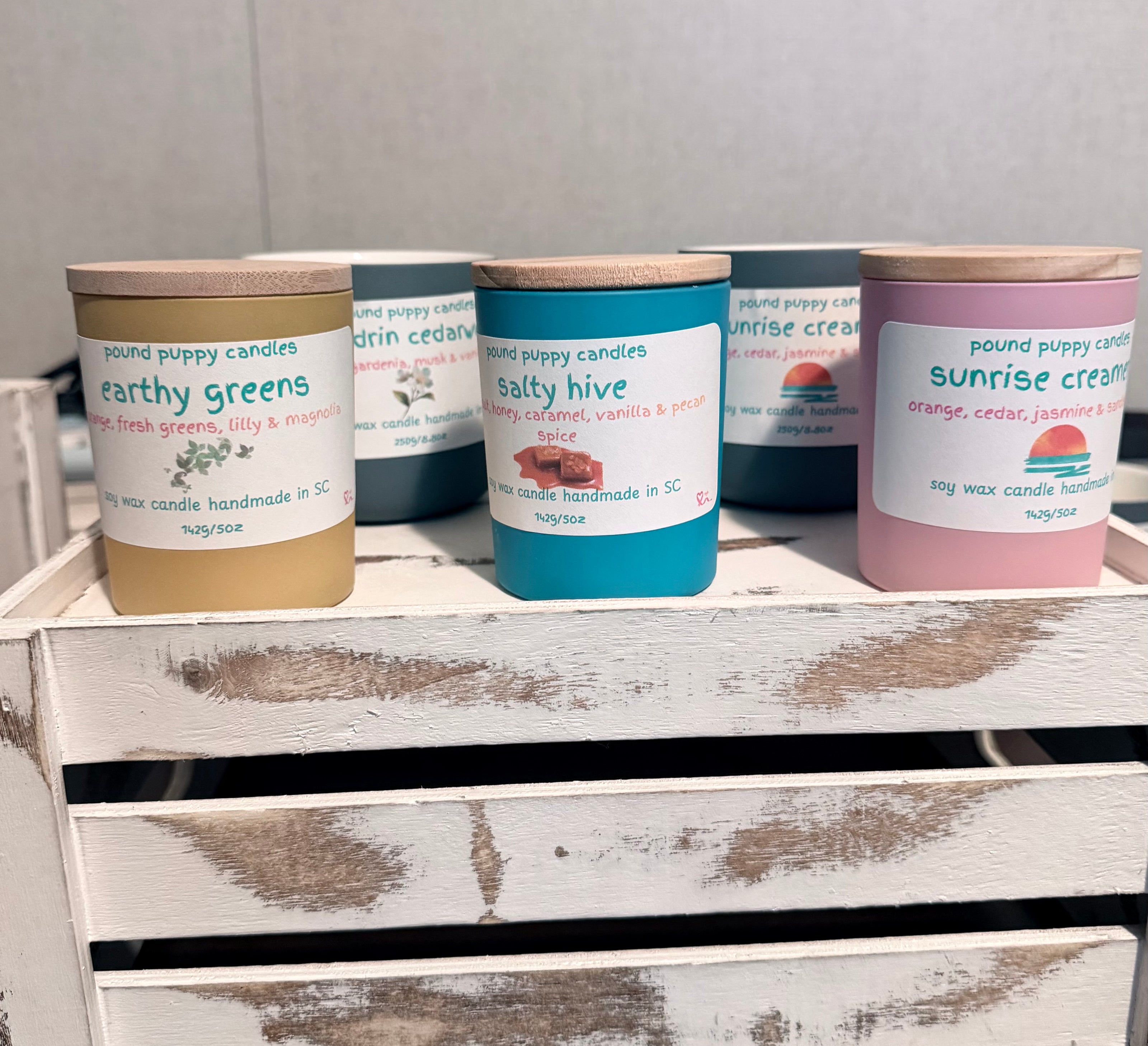 Crafting unique candles for over four years, Pound Puppy Candles has turned a passion into a heartfelt commitment to brighten and warm your living area, symbolizing shelter animals in search of a caring home.
