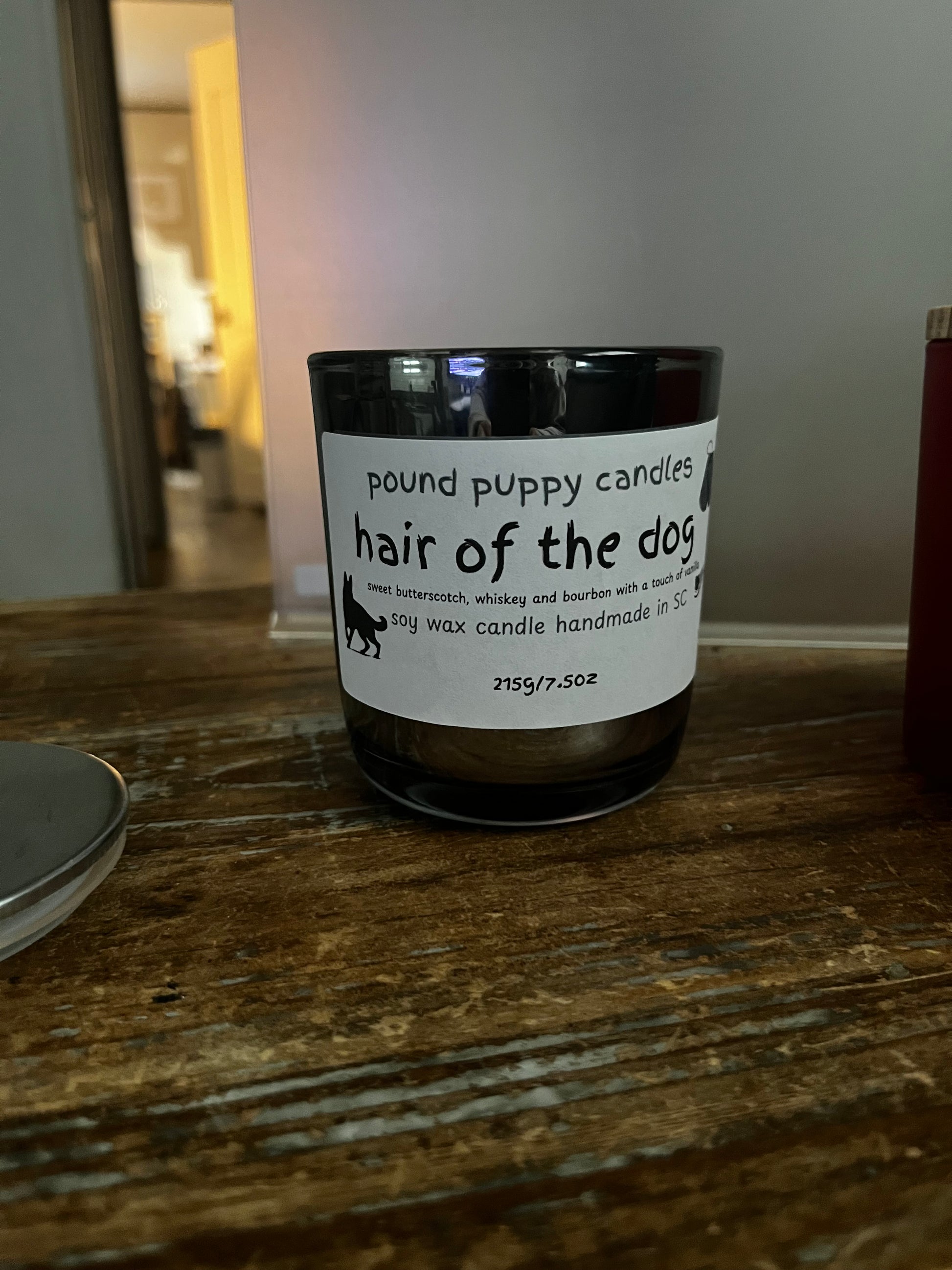 "Get rid of that hangover funk with our "Hair of the Dog" candle. Infused with notes of sweet butterscotch, whiskey and bourbon, followed by a relaxing vanilla scent. It's the perfect remedy for a wild night out!"